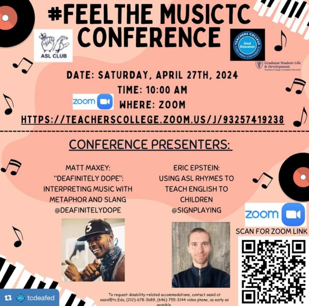 #FeelTheMusicTC 2024 Conference deafmusicprojectApril 27, 2024April 12, 2025#feelthemusic Conference, Deaf Music Project Post navigation PreviousNext View Eric Epstein’s Presentation: Using ASL Rhymes to Teach English to Children Share this: Click to share on X (Opens in new window) X Click to share on Facebook (Opens in new window) Facebook Like Loading...
